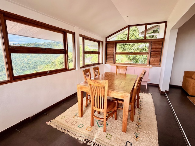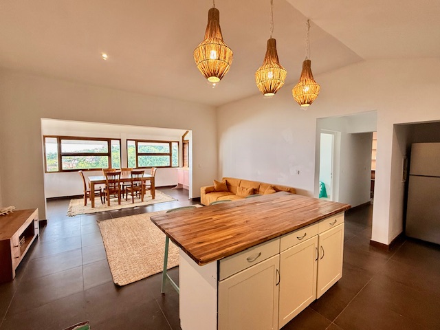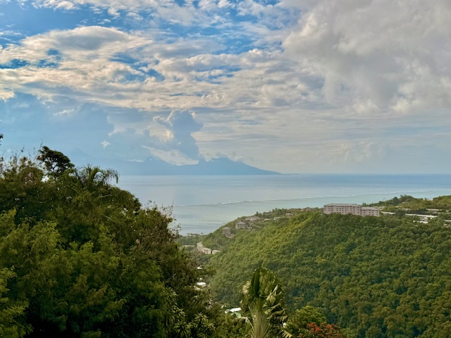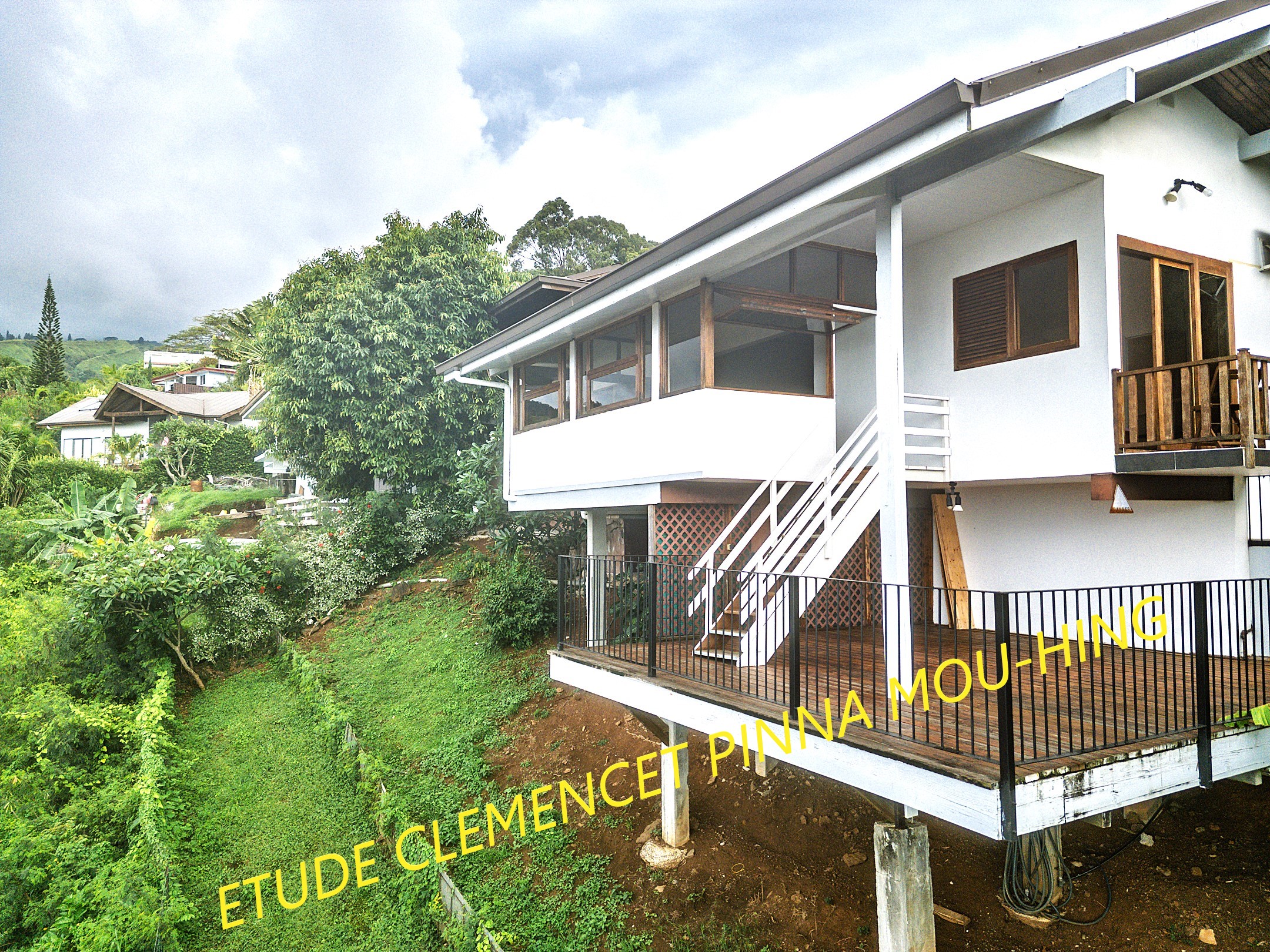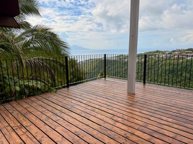 Punaauia Matatia en hauteur très belle vue Moorea, belle maison d’environ 110 m² en dur avec double garage. Elle est composée d’une entrée sur une cuisine ouverte avec arrière-cuisine, un salon et une salle à manger, un chambre parentale avec sa salle d’eau et son wc, deux chambres avec salle d’eau wc commune. Espace bureau. Partie plate piscinable. Deck de 45 m².